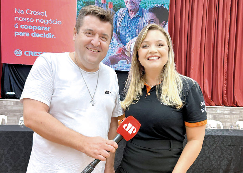 Juliana Delgado, gerente da Cresol Tupã, recebeu cooperados ao lado do diretor executivo Jackson Joaquim e da equipe da cooperativa durante a assembleia anual, realizada em março, comemorando conquistas e apresentando planos para 2026.